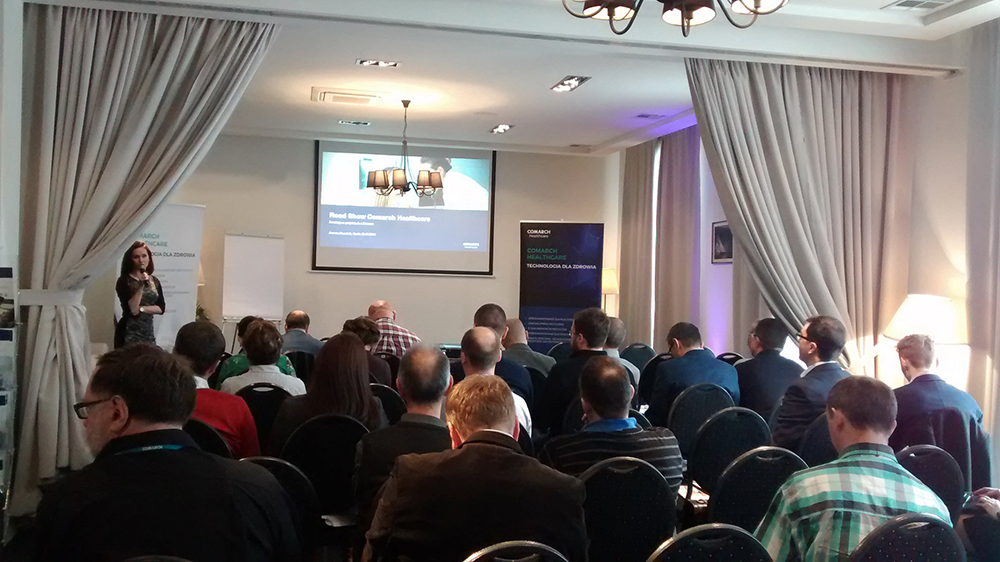 Z przyjemnością informujemy Państwa, iż nasza firma uczestniczy w konferencji Road Show Comarch Healthcare. Na minionym spotkaniu mogliśmy posłuchać prelekcji Joanny Hawaluk, Andrzeja Rybickiego, Pauli Łęckiej, Violetty Margasińskiej, Marty Niezgody, Roberta Olejniczaka, Artura Słupeckiego oraz Justyny Kaloty. Poruszony został temat metod pozyskiwania środków na projekty z zakresu e-Zdrowia oraz rozwiązań telemedycznych, które mogą być przedmiotem przyszłych wdrożeń. Największą uwagą cieszyły się prezentacje dotyczące zdalnych usług opiekuńczych oraz te mówiące o ich praktycznej sprzedaży.
